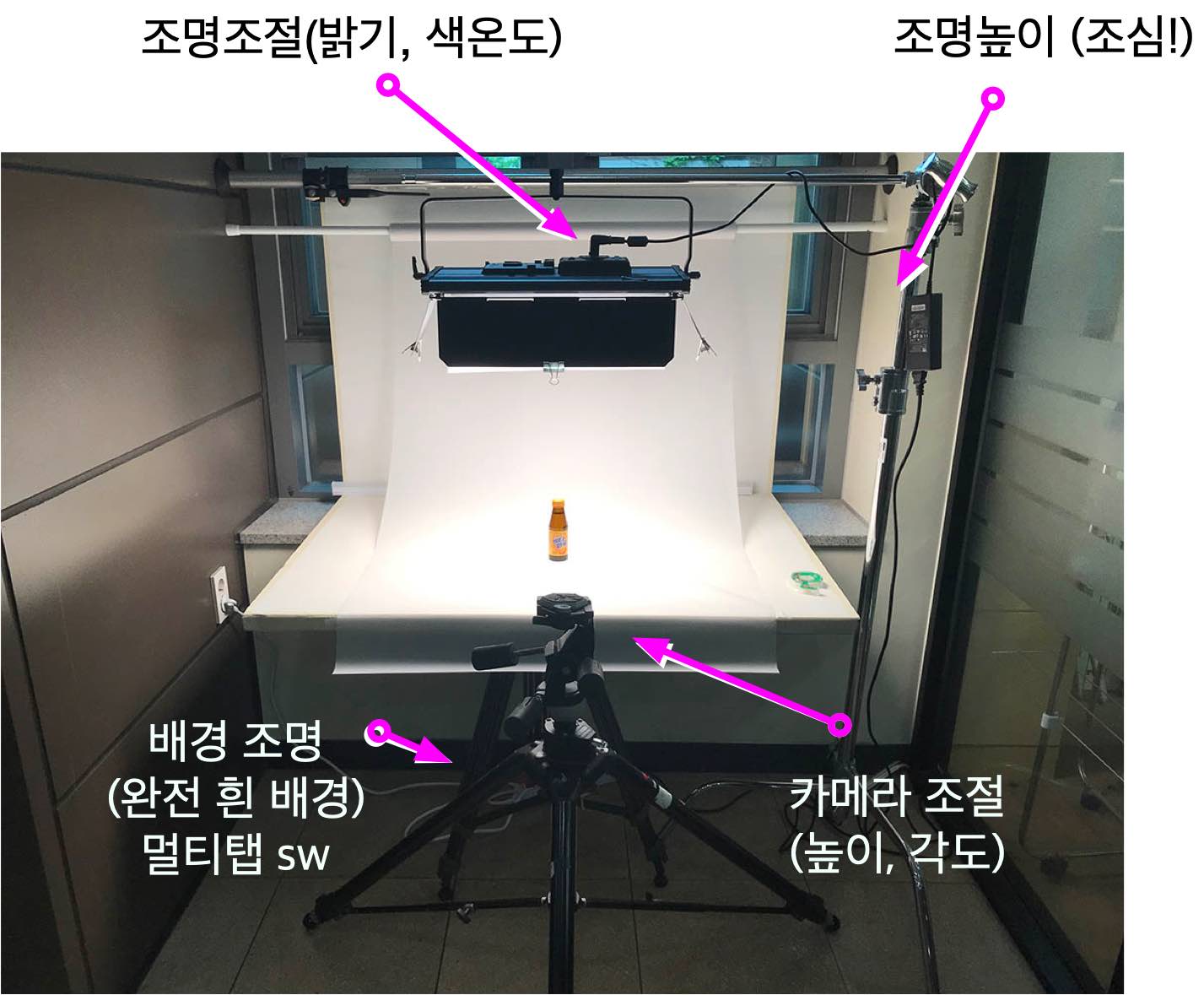 1. 조심 조심. 다치지 말 것 (특히, 조명 높이 조절...)